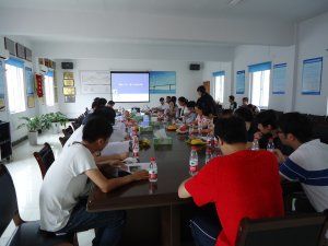圖2:在工地會(huì)議室聽取海上施工工藝的講解。