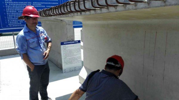 2015年8月5日,在臺州市玉環(huán)縣樂清灣大橋及接線工程第2合同項目部,舉行了一場基樁完整性和鋼筋保護層檢測的比對試驗,本次比對試驗由浙江交科工程檢測有限公司發(fā)起,寧波市交通建設(shè)工程試驗檢測中心有限公司、嘉興市卓越交通建設(shè)檢測有限公司和溫州市交通工程試驗檢測有限公司參與,上述四家單位依次對該工程中的1#工程樁進行了超聲波檢測,對2#工程樁進行低應(yīng)變檢測,對1#立柱和1#T梁進行了鋼筋保護層檢測。根據(jù)四家單位的檢測數(shù)據(jù)分析,基樁完整性檢測:波形較為統(tǒng)一,混凝土波速較接近,判定完整性類別一致;鋼筋保護層檢測:檢測數(shù)據(jù)較為接近,結(jié)果誤差在合理范圍內(nèi)。通過此次比對試驗,對我公司檢測人員在基樁完整性與鋼筋保護層檢測技術(shù)方面有了更深入的了解和提高,為今后的檢測工程打下了堅實的基礎(chǔ)。