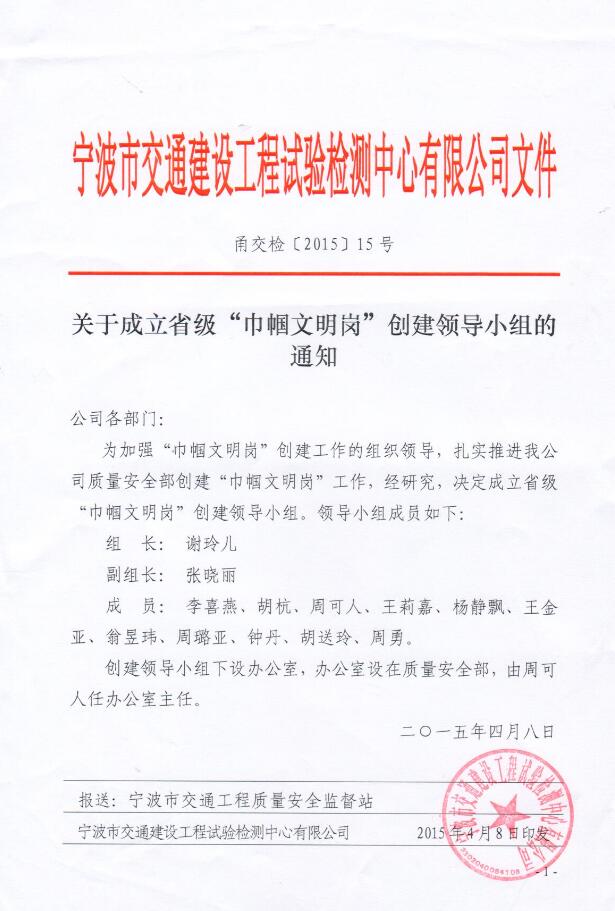 關(guān)于成立省級(jí)“巾幗文明崗”創(chuàng)建領(lǐng)導(dǎo)小組的通知