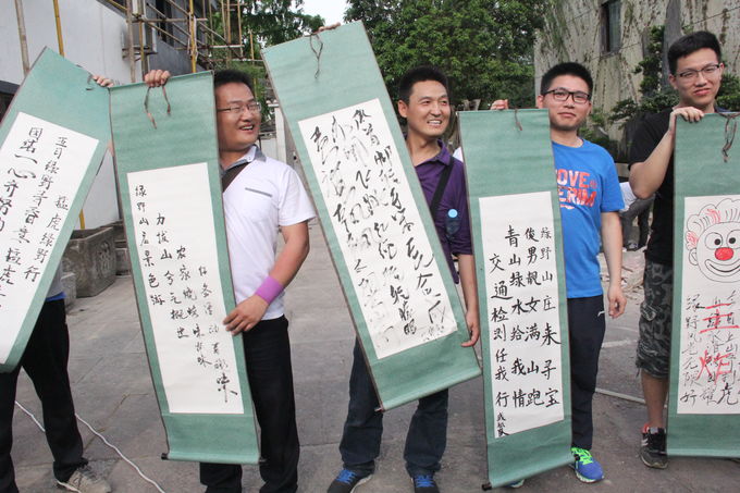 素拓活動以“取隊名、畫隊旗、想口號”開始,經(jīng)過頭腦風(fēng)暴誕生了風(fēng)格迥異、特色鮮明的八支參賽隊伍。“加油!加油!使勁!”在聲聲的吶喊中,拔河比賽拉開了序幕,只見雙方鼓足了士氣,紅色綢帶隨著整齊的“一!二!”口號聲左右擺動,盡顯“彪悍本色”。在之后的“潘多拉之信”環(huán)節(jié)中,各個參賽隊可以選擇任意環(huán)節(jié)進行挑戰(zhàn),并在規(guī)定的時間內(nèi)完成任務(wù)返回起點方為成功。有智力比拼的“數(shù)字密碼”,消耗體力的“指壓板跳繩”,還有考驗?zāi)跖浜系?ldquo;惺惺相惜”、“平衡迷宮”、“你畫我猜”、“生死時速”等團隊合作任務(wù),使大家深刻體會到團隊內(nèi)部協(xié)作處理、精密配合的重要性。在活動的最后,各個參賽隊各顯神通,創(chuàng)作出“五月綠野尋春意,猛虎上山現(xiàn)朝氣,團結(jié)一心齊努力,勇往直前創(chuàng)佳績”等多首朗朗上口、獨具特色的打油詩,整個素拓活動在其樂融融的氣氛之中完美收官。